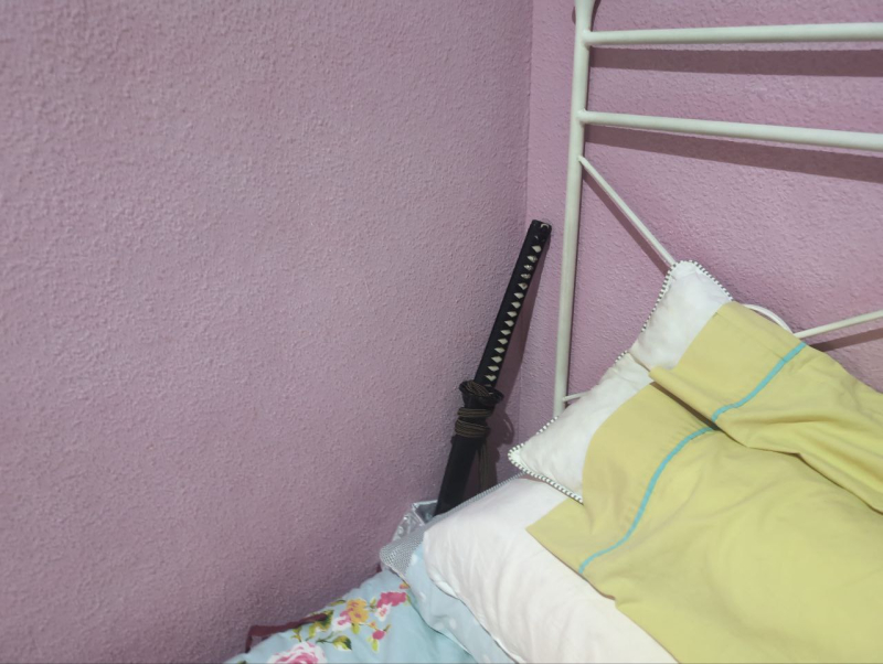 Pero esto cambió un poco el viernes pasado. Como señalé en este vídeo, me ha llegado una espada que adquirí en enero de este año. Un retraso fortuito pero de oportunismo casi providencial ha provocado que de nuevo durmiera con una espada al alcance de mi mano. Y de golpe, el lugar pasó a ser mucho más cómodo y estable. En mi mente algo paso a encajar y simplemente me sentí mejor.